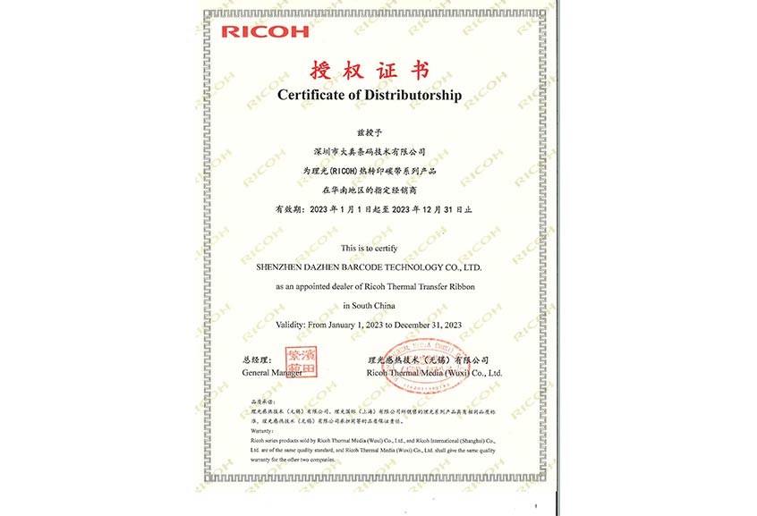 2023年理光代理證書